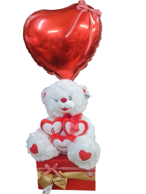 מארז אהבה מכיל דובי מארז שוקולדים ובלון מיילר